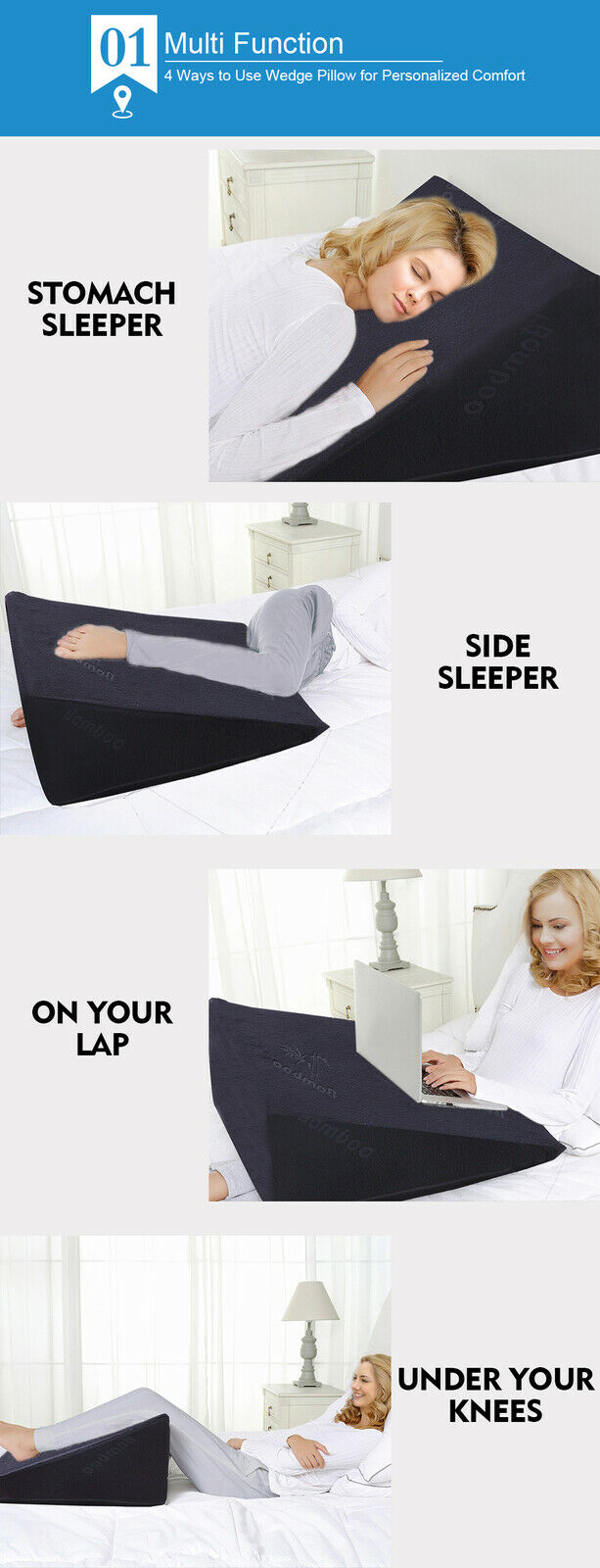 Each wedge is crafted from high-density Visco elastic memory foam, ensuring it contours to your body while maintaining firm, stable support. Unlike standard foam pillows that retain heat, these are infused with cooling gel, helping to regulate temperature and provide a refreshing, breathable sleep surface. Additionally, the antibacterial and anti-mite properties make them perfect for allergy sufferers.