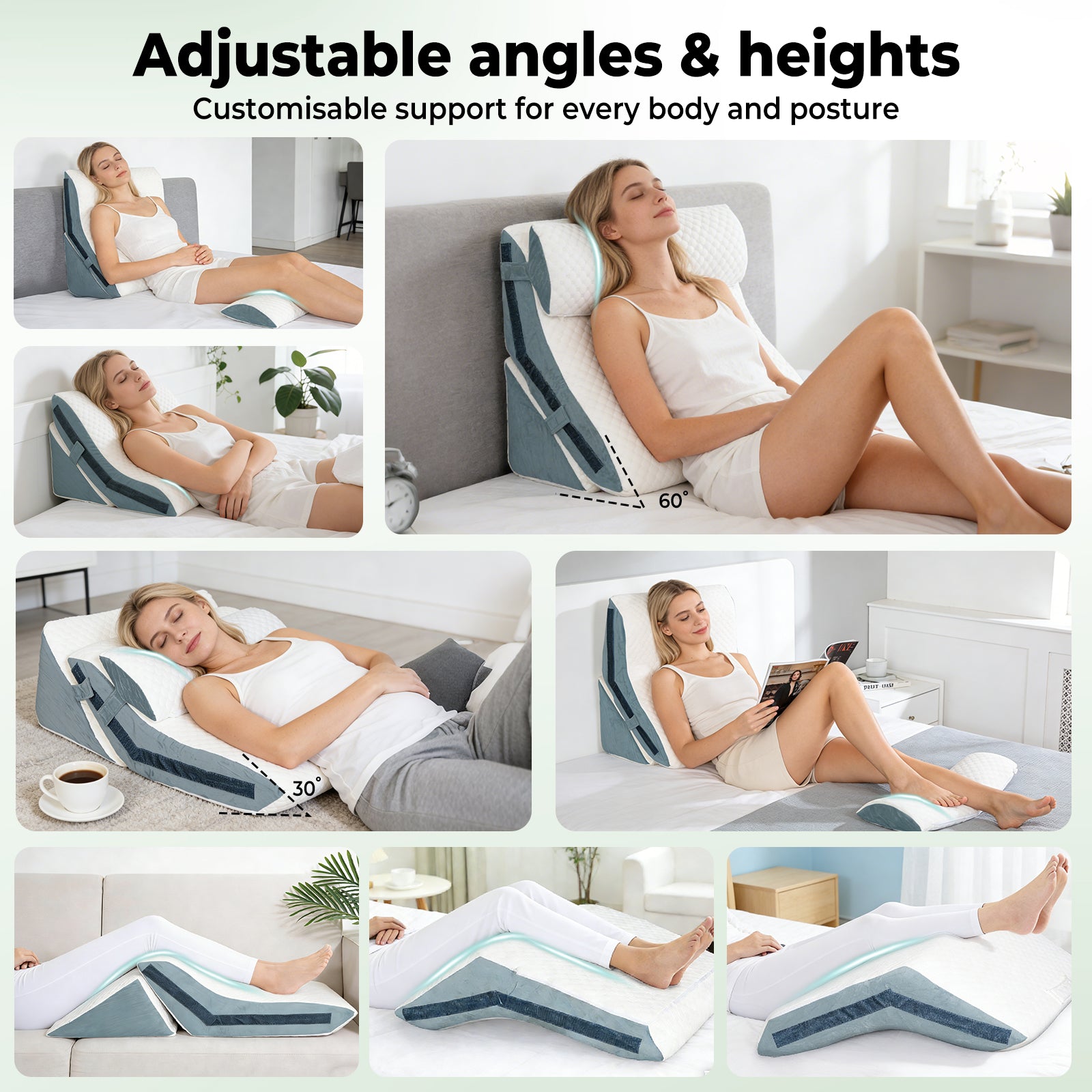 Experience personalised comfort with the Dreamz Orthopedic Bed Wedge Pillow. This 3-in-1 pillow offers three adjustable angles and two height options, with a 24-inch wide surface to suit all body types.