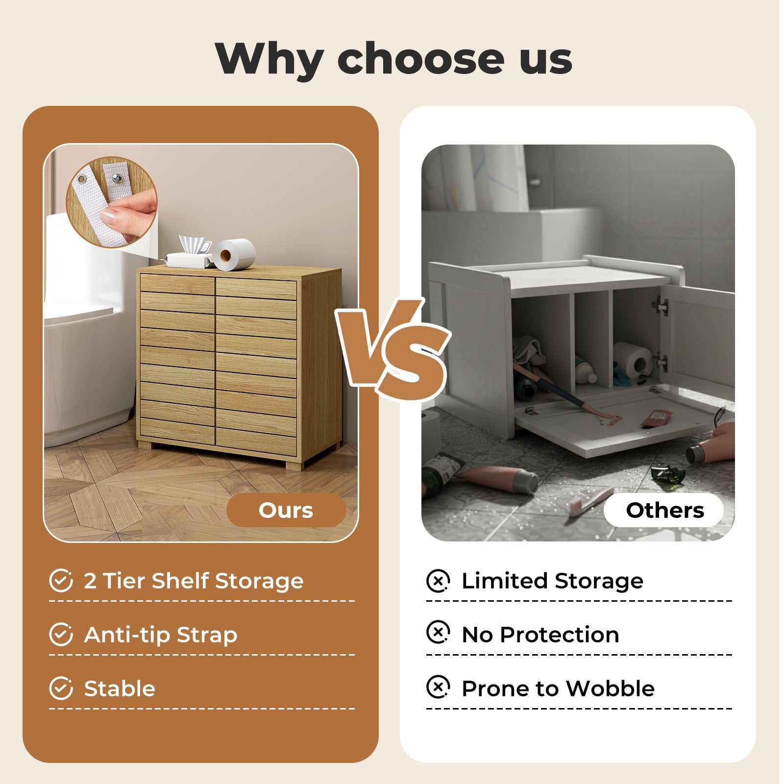 Whether used as an oak bathroom cabinet beside the toilet or as a standalone storage solution, this bathroom cabinet offers reliable stability with included anti-tip fittings for added safety. Easy to assemble and built for everyday convenience, ensures this cabinet is both functional and visually appealing. Choose to elevate your bathroom with practical storage and timeless oak-style design.