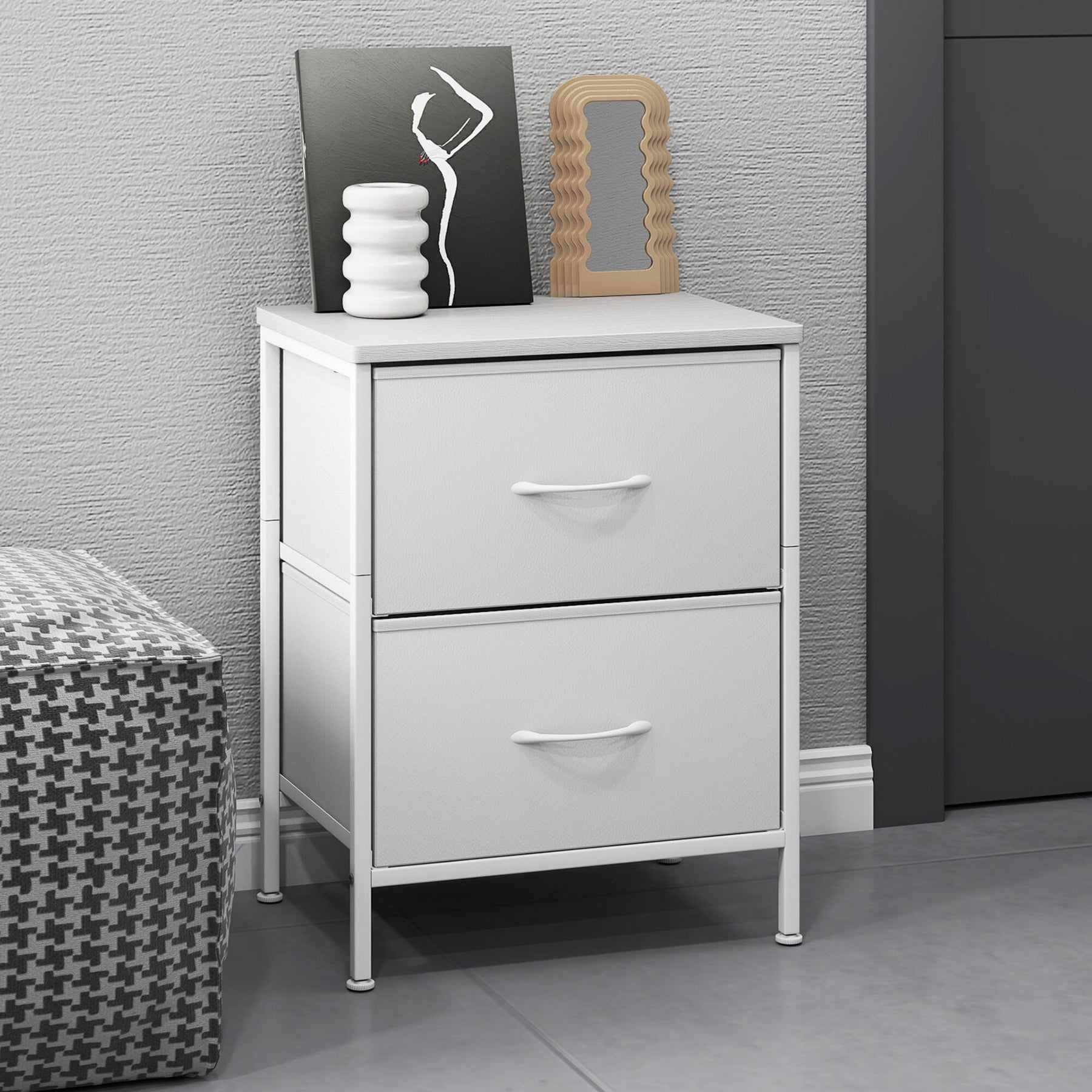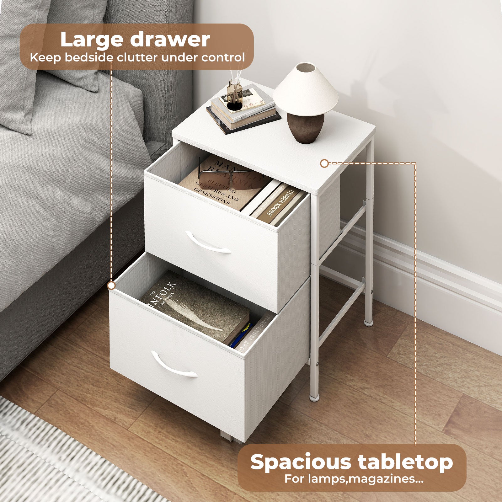 Bedside Table - White Bedside Table with 2 Drawers for Bedroom & Living Room Storage