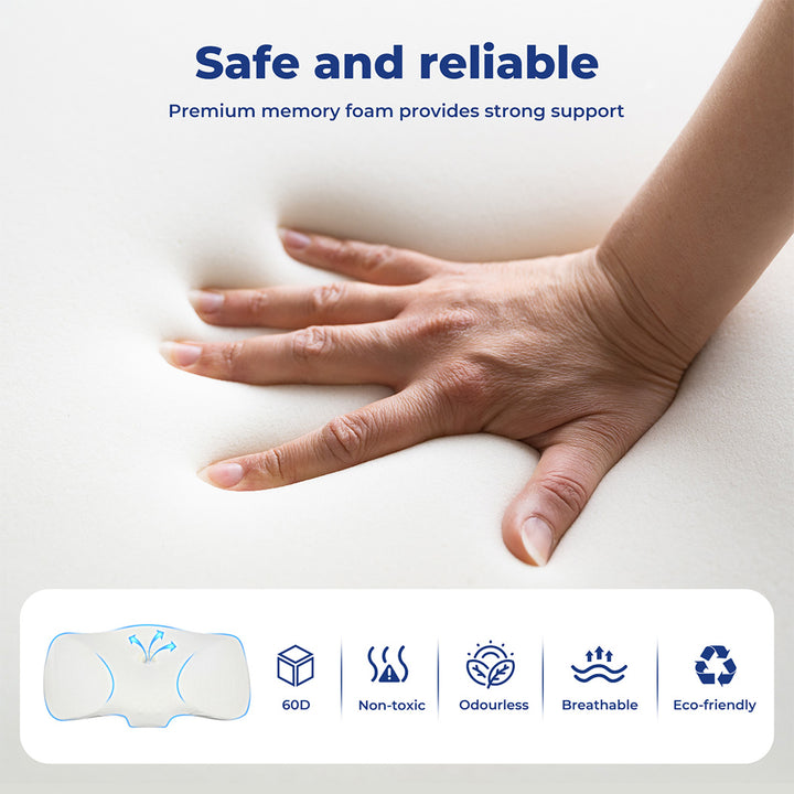 Enhance your sleep quality with the Memory Foam Pillow,designed to provide superior neck and shoulder support for a truly restful night's sleep. Crafted with high-density memory foam,this pillow contours to the shape of your head and neck relieving pressure points and promoting optimal spinal alignment.Its ergonomic design ensures personalized comfort,making it an excellent choice for side,stomach,and back sleepers alike.The breathable,hypoallergenic cover enhances airflow,keeping you cool and comfortable throughout the night,Whether you're looking to reduce neck pain,improve posture,or simply enjoy a plush yet, supportive feel,the Dreamz Memory Foam Pillow is the perfect addition to your sleep routine.