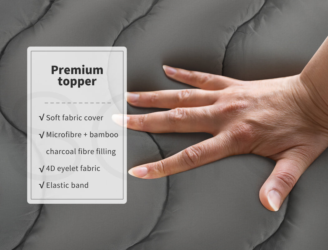 Transform your sleep experience with a premium bamboo charcoal fibre mattress topper. Since we spend about 33% of our lives sleeping, it's essential to make every night count. This mattress topper is designed to rejuvenate your bed, ensuring you wake up refreshed and ready to conquer the day.