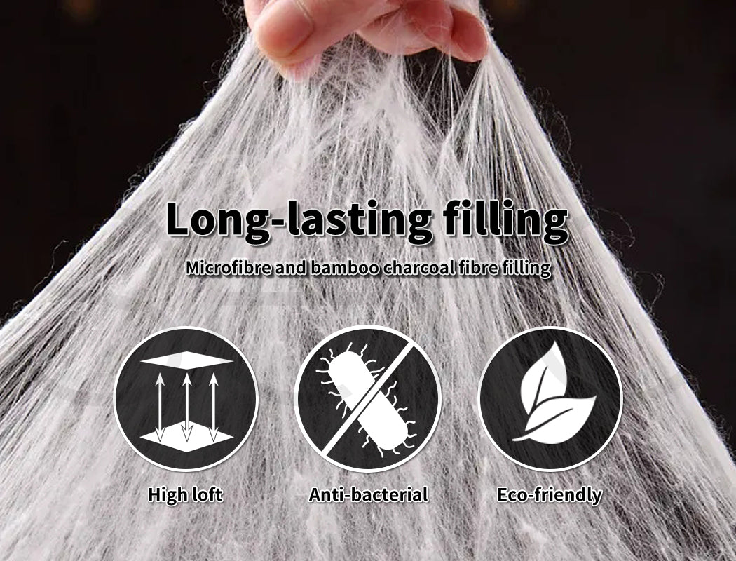 Material: 90% microfibre + 10% bamboo charcoal fibre filling + polyester fabric.