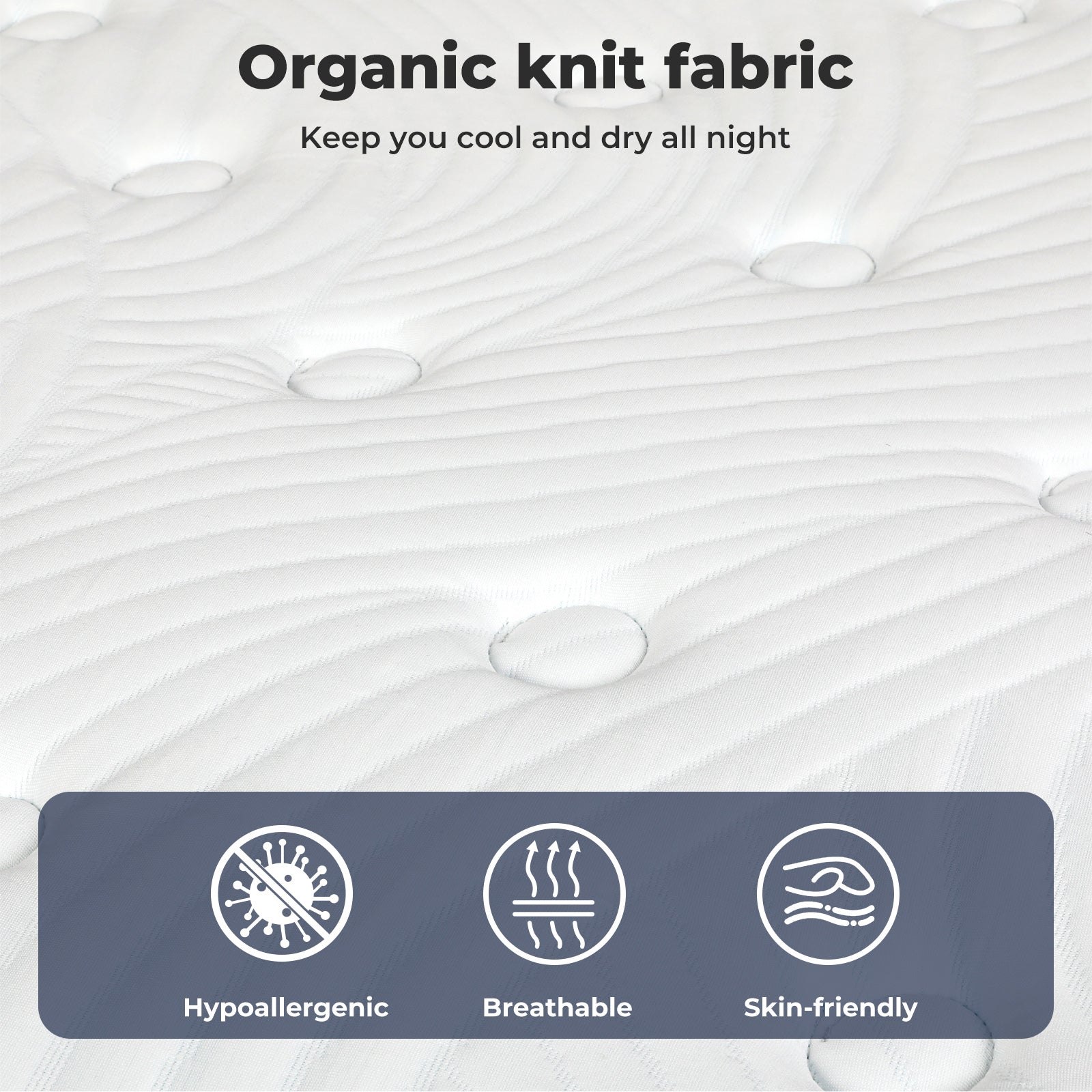 Material: Knitted fabric, Memory foam, Wave foam, PK cotton, Independent pocket springs, Brushed fabric