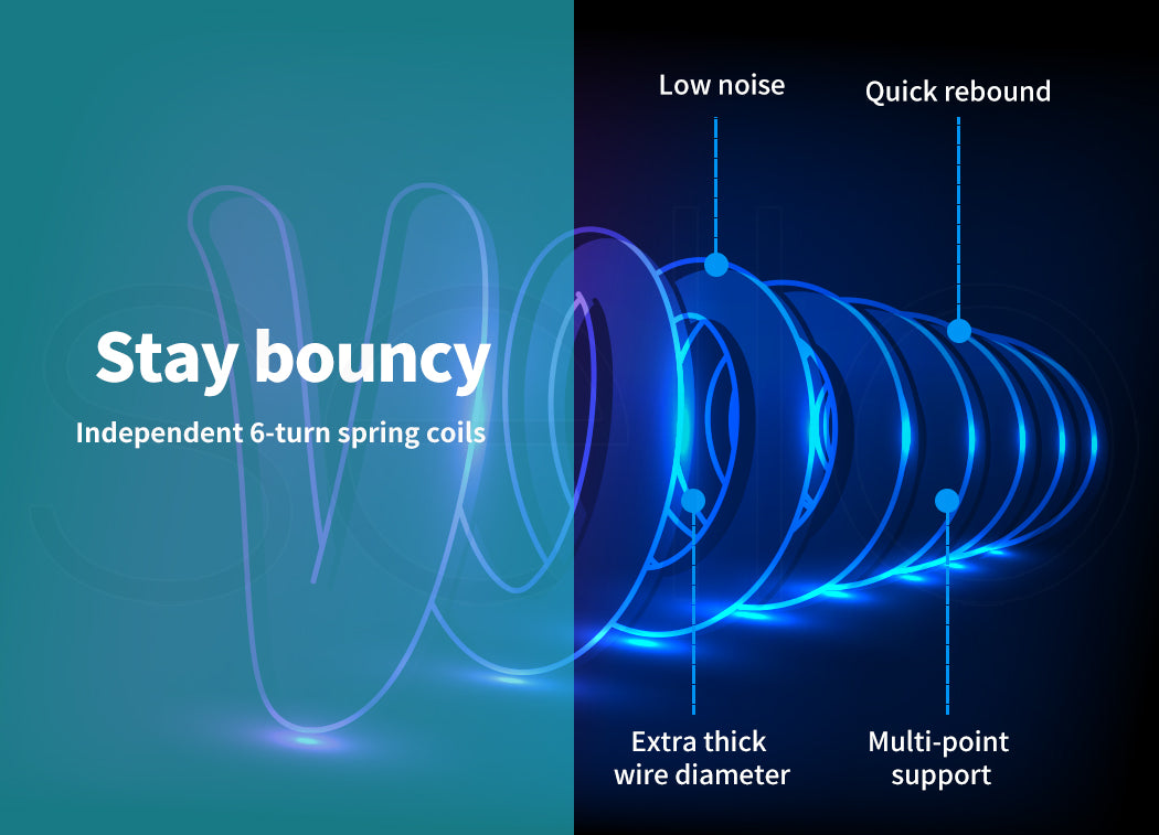 - Independent 6-Turn Coil System: Reduces motion transfer for uninterrupted sleep, even with movement.