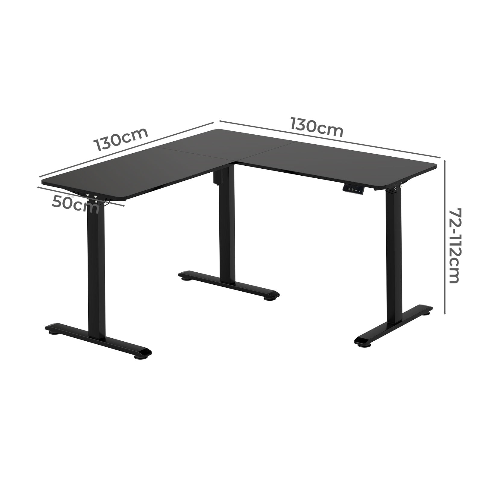 With a 130×50cm main desk and 80×50cm secondary surface, plus 2 convenient hooks for headphones or bags, this standing desk with memory is perfect for multi-tasking, gaming setups, or home office organization. The bottom frame includes adjustable feet to ensure stability on uneven floors. Upgrade your work environment with this height adjustable standing desk from a reliable home office standing desk that combines ergonomics, safety, and style.