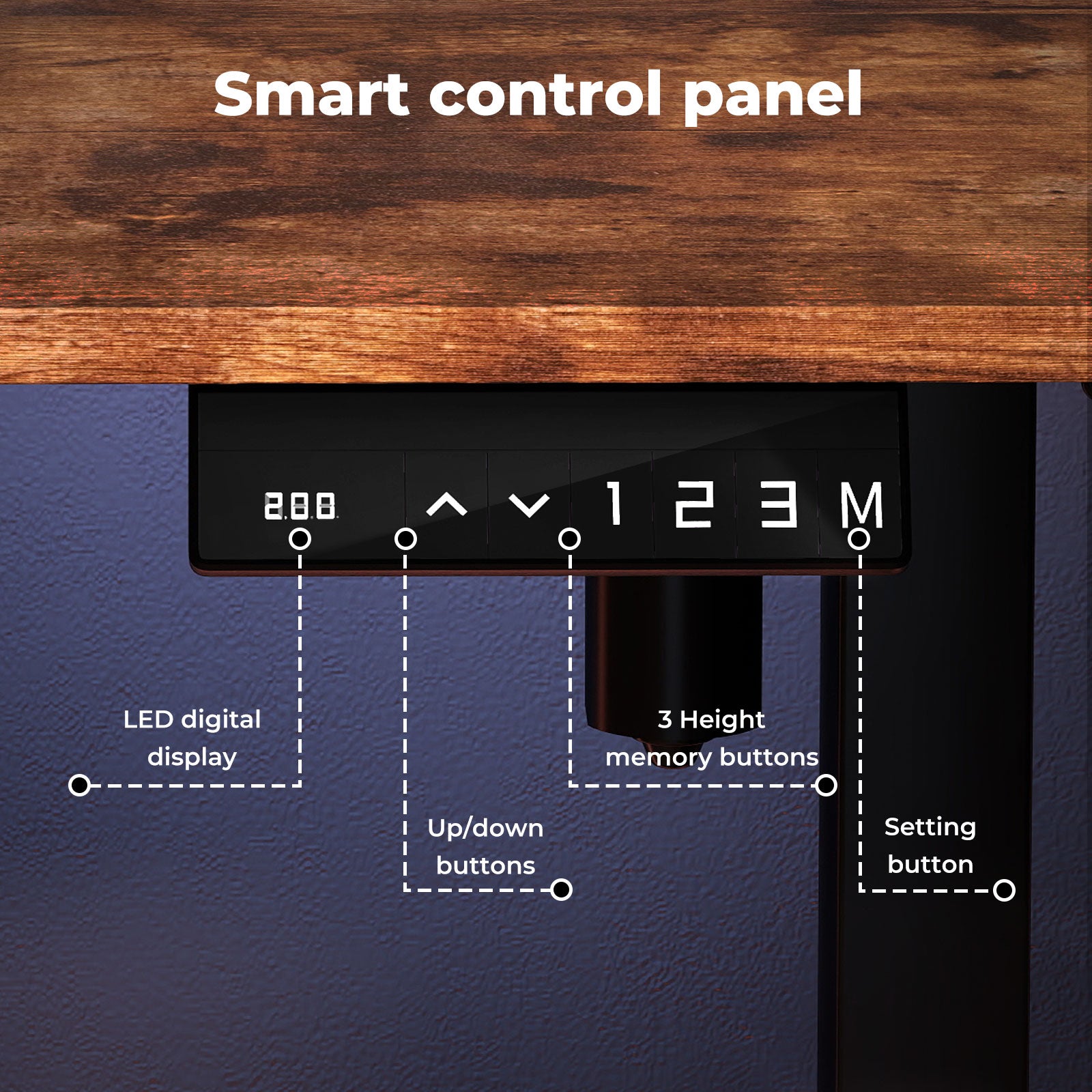 Crafted with durable EO-grade particle board and a sturdy steel frame, the adjustable desk supports up to 60kg while providing long-lasting stability. The 6-button digital controller includes 3 memory settings, energy-saving standby mode, child lock, and anti-collision protection for safer use.