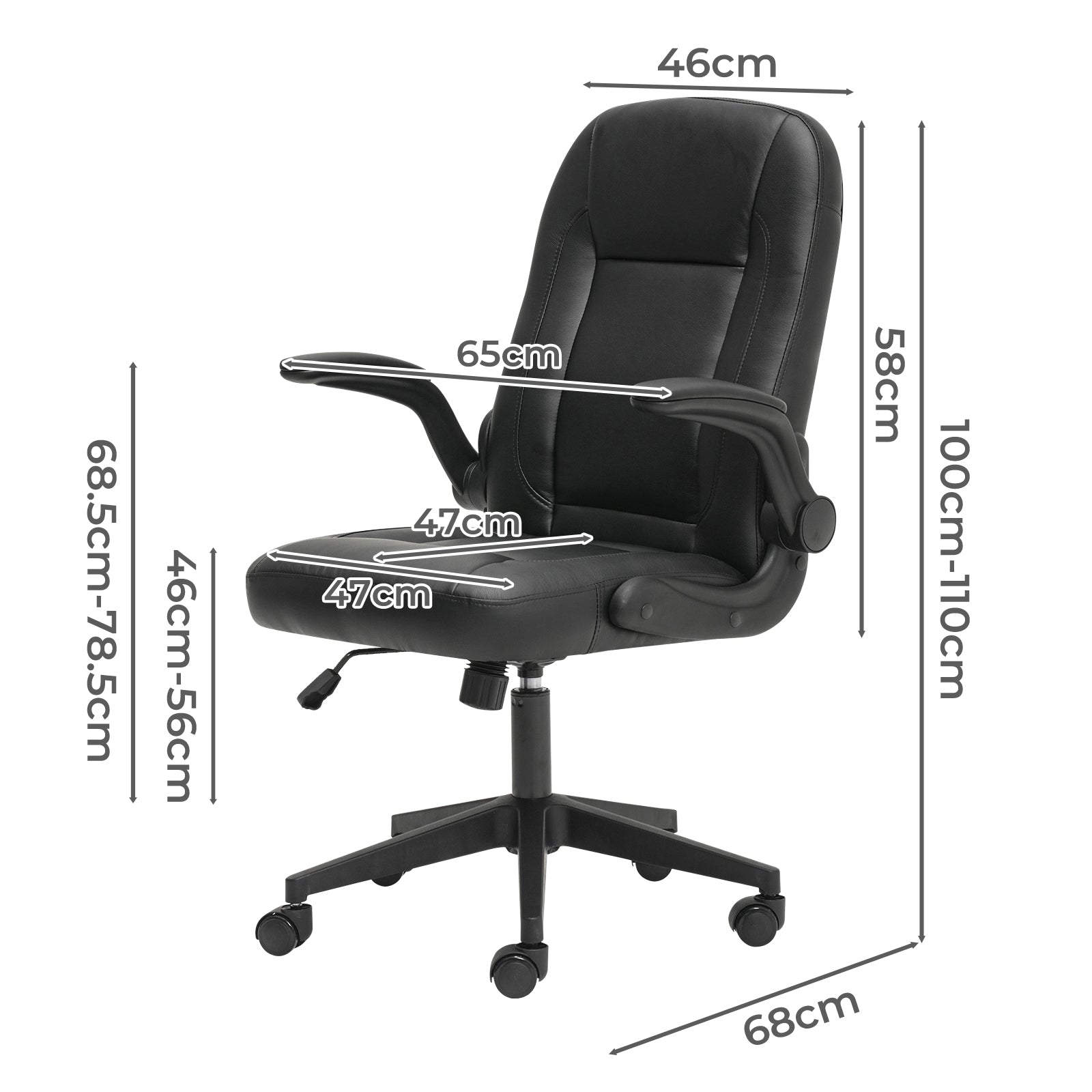 The chair features a smooth 90–110° tilt mechanism, allowing you to recline and relax with ease. As a fully adjustable office chair, the seat height can be set between 46–56cm, while the 90° flip-up padded armrests help save space by sliding neatly under desks. Whether used as a computer chair or a daily work seat, flexibility is built in.