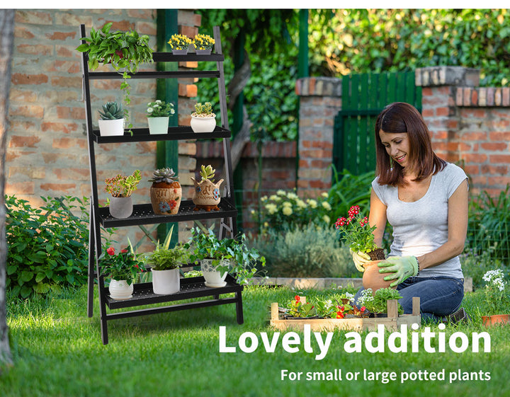 Organise your plants on your outdoor plant stand. Give all your pot plants lots of sun so they can thrive. Create a green and productive space. Sit outside and gaze on your flower pots.