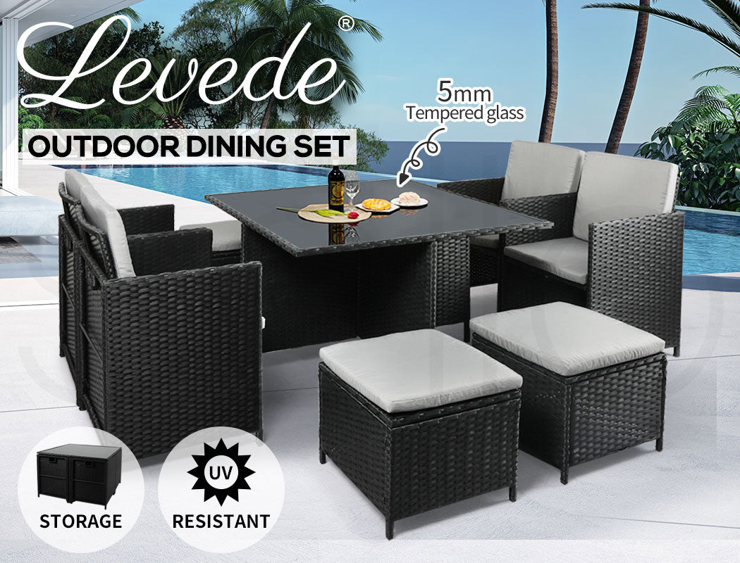 Your outdoor dining set is designed to live outdoors. Hose it down if it gets dirty or use a damp cloth. If you want it to last even longer, keep it out of the harsh sun.