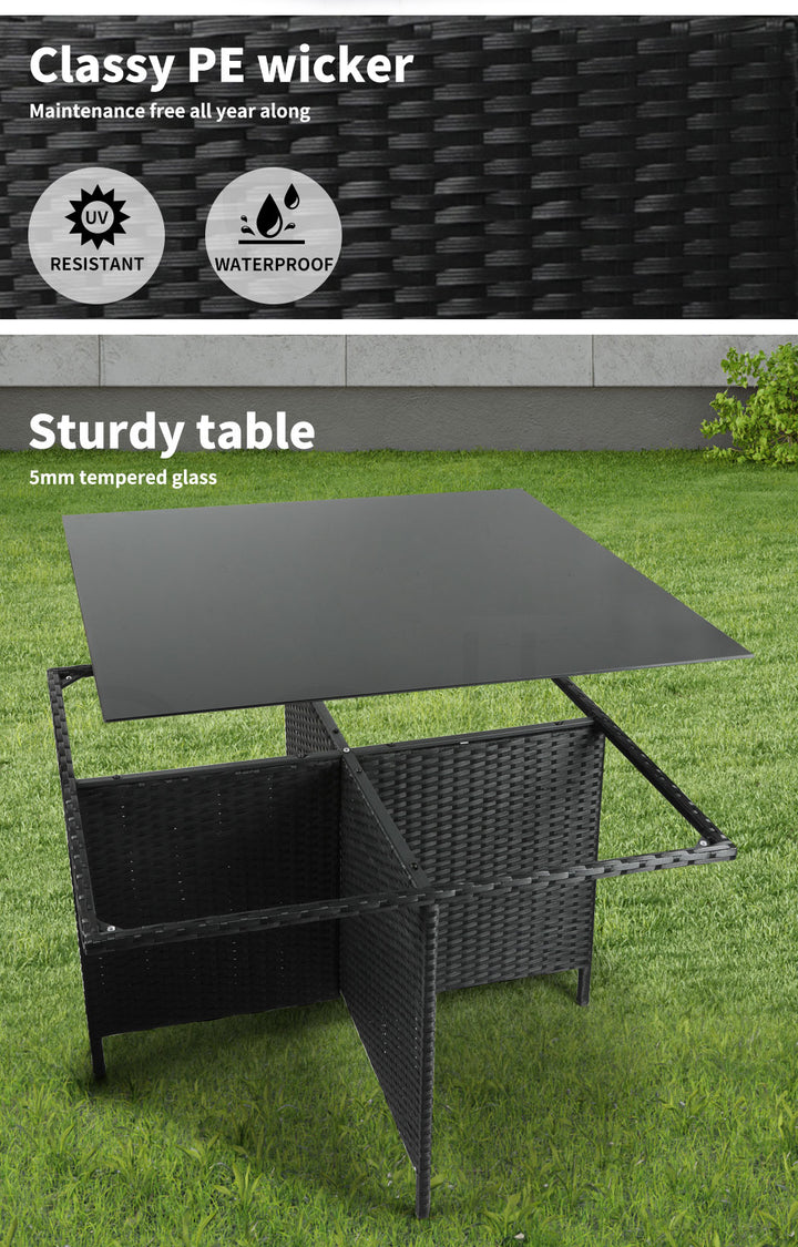 - Table dimensions: 109cm x 109cm x 72cm (W x D x H)