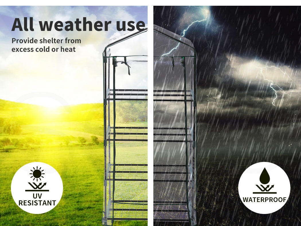 Made from highly durable steel, PVC, and PP material. The entire frame of the greenhouse is built with strong steel to withstand heavy winds and accidental shifts. Equipped with heavy-duty PP connectors to hold the frame together. The entire outer covering is made of strong PVC material, offers a comprehensive covering. The PVC layer is transparent giving you clear visibility of plants inside. Designed to resist UV rays and water. All the components together form a perfect barrier against outside pollutants and seasonal change. Meant for all-season use, whether raining or extreme sunlight it can withstand it all. Apart from its strength also a perfect insect repellent. Our product also offers electrical insulation. Very easy to access with its zipper door. Seal it off completely when not in use. Designed for indoor or outdoor use. Very easy to install with simple instructions. Innovative and flexible, install it in your garden, patio, deck, or yard.