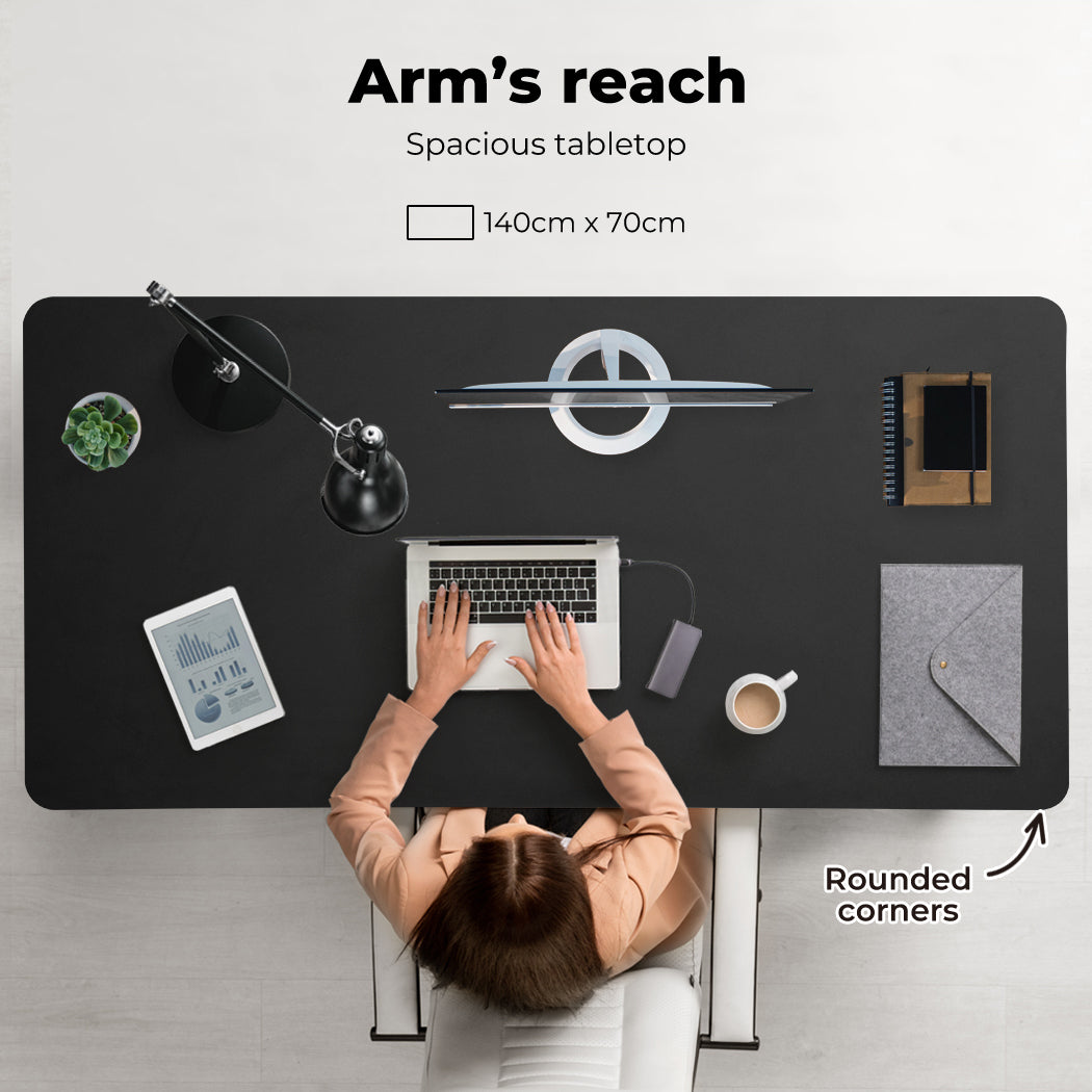 - Compatible tabletop dimensions: 110cm to 140cm x 60cm to 80cm (W x D)