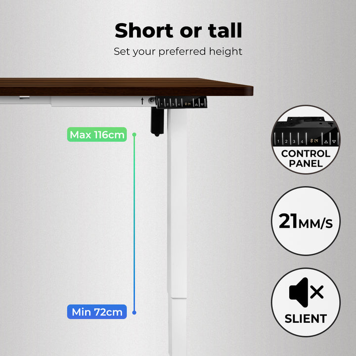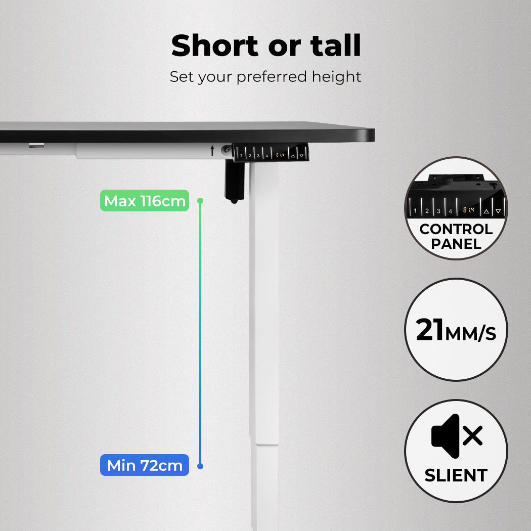 Transform your workspace with a motorised desk that you can build to suit your needs. Combine a sturdy wooden tabletop with a motorised desk frame to create the perfect sit-stand solution. Simply plug it into a power socket and let the motor do the lifting for you.