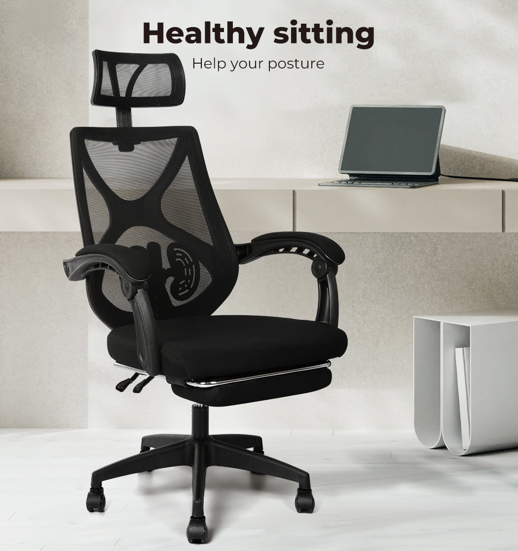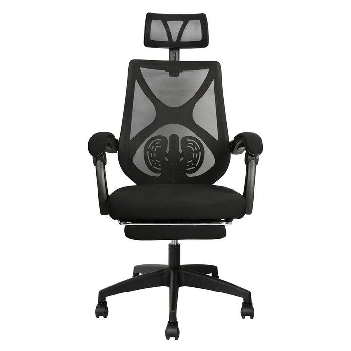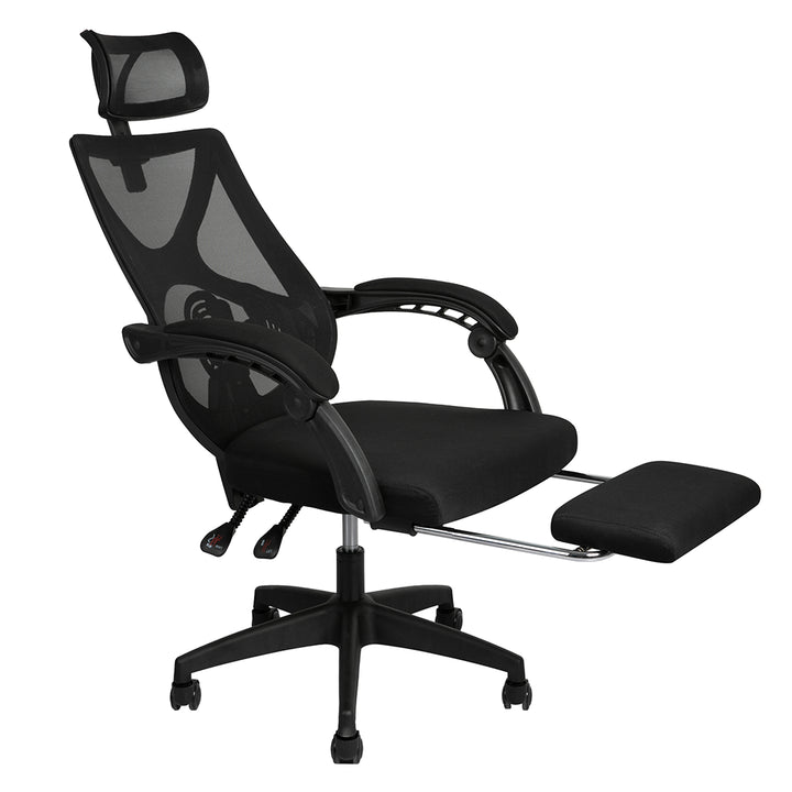 Stay cool, supported, and comfortable with the Office Gaming Chair, engineered for long hours of work or play. Featuring a breathable mesh back, ergonomic S-curve design, and height-adjustable lumbar support, this chair promotes healthy posture while reducing fatigue. The adjustable and removable headrest adds extra support, while the retractable footrest and linked handrails let you relax in style.