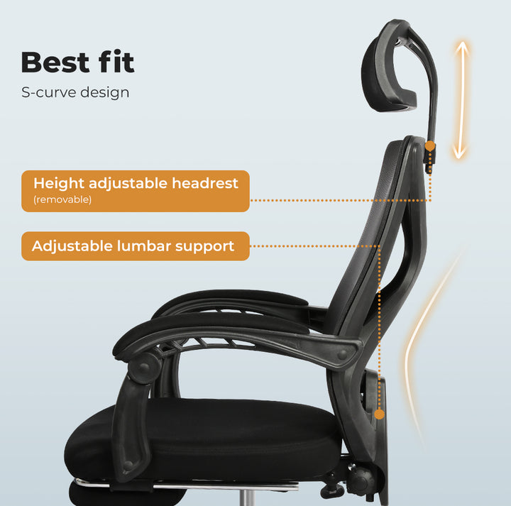 Height Adjustable Lumbar Support: Personalised lower back comfort.