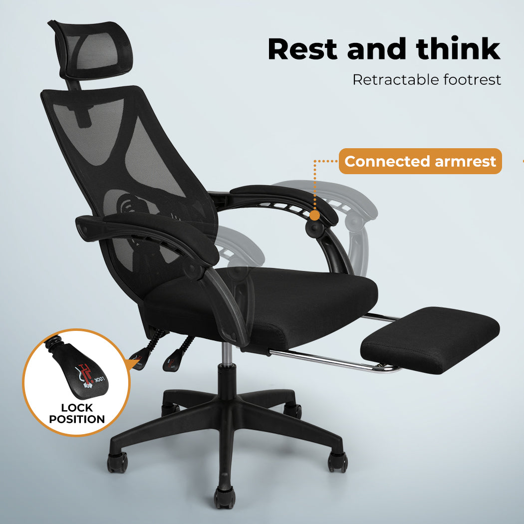Retractable Footrest: Relax between tasks or gaming sessions.