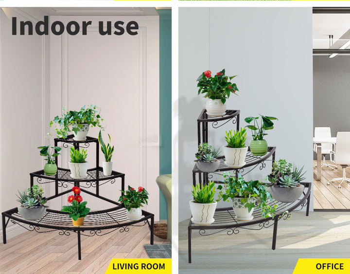 Bring happiness to your home with a versatile metal plant stand that enhances your indoor and outdoor spaces. Perfectly designed for your balcony, garden, or living room, this stand allows you to carefully arrange your plants, ensuring they receive the lots of sun they need to thrive. Water regularly, and consider adding new pots and seeds to cultivate a vibrant array of greenery.