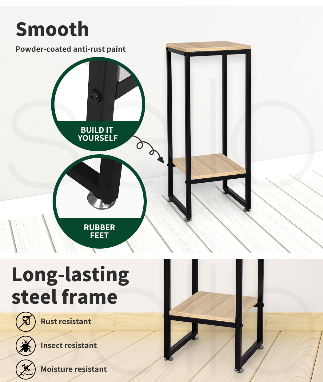 Our tiered plant stand not only maximizes sunlight exposure for your plants but also helps you create a vibrant, productive environment. Perfect for your lounge or dining room, or even under the cover of your balcony, this stand is designed for easy mobility, allowing you to freely move your plant stand wherever you desire.