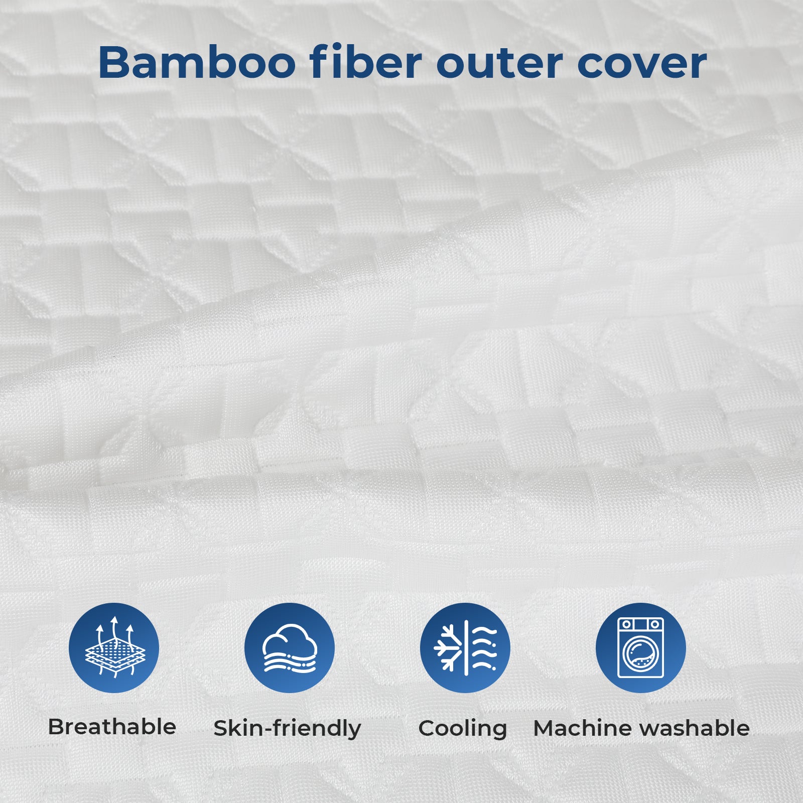 Wrapped in a soft, breathable bamboo fabric cover, this bamboo memory foam pillow enhances airflow and cooling performance. The advanced cooling layer helps absorb excess heat, making it a reliable cooling memory foam pillow and cooling pillow for warm sleepers.