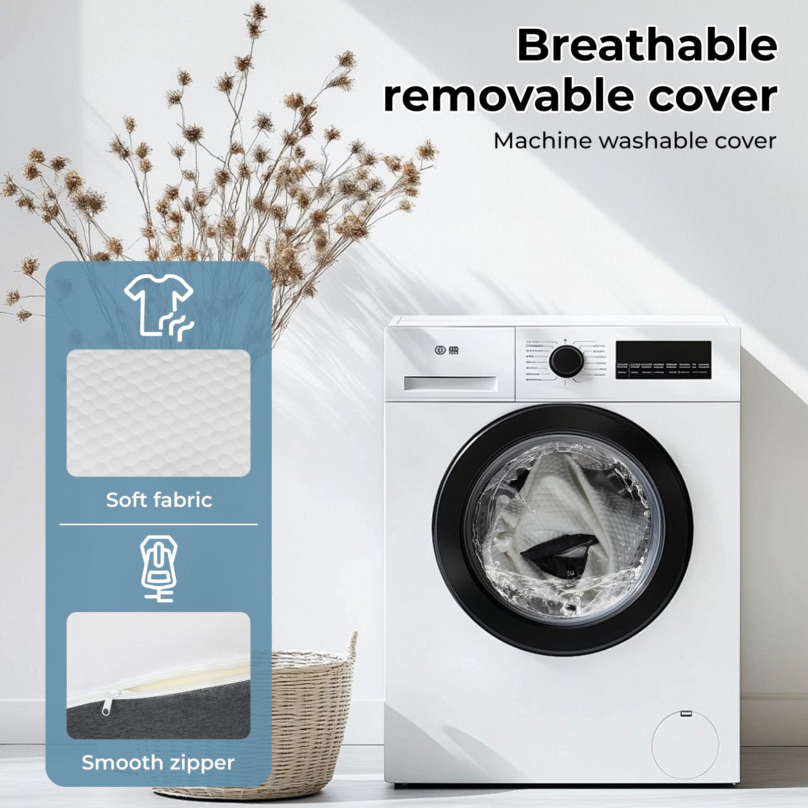 - Removable, washable cover