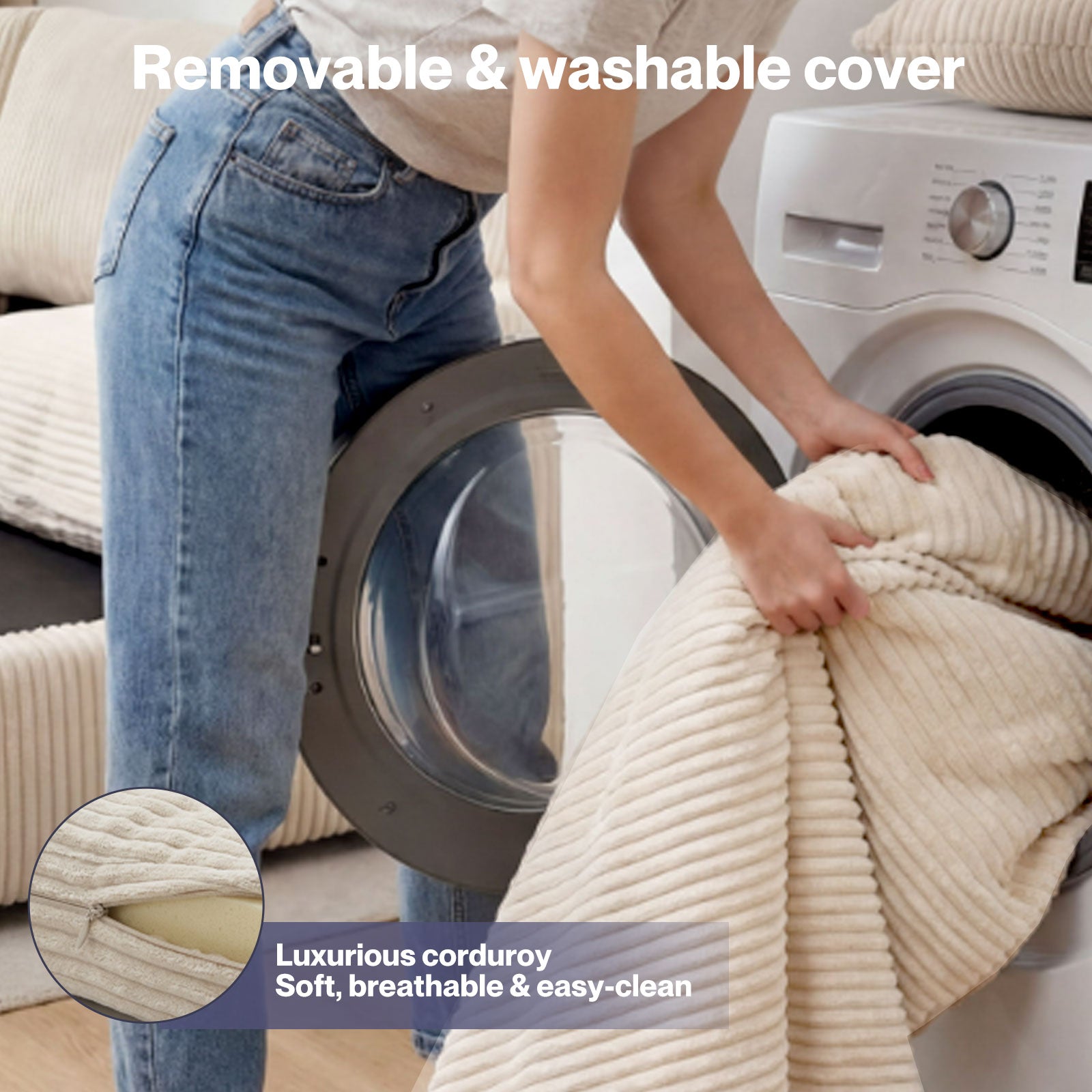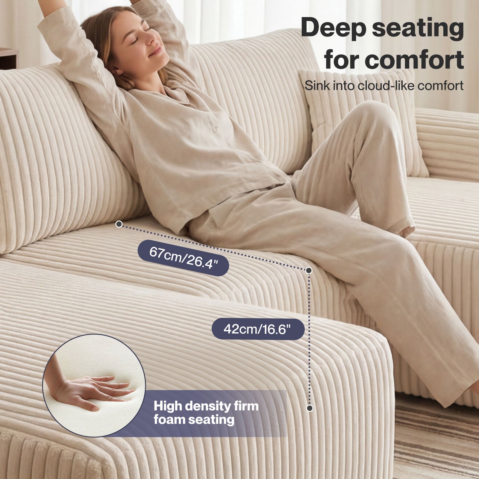 - Premium corduroy upholstery