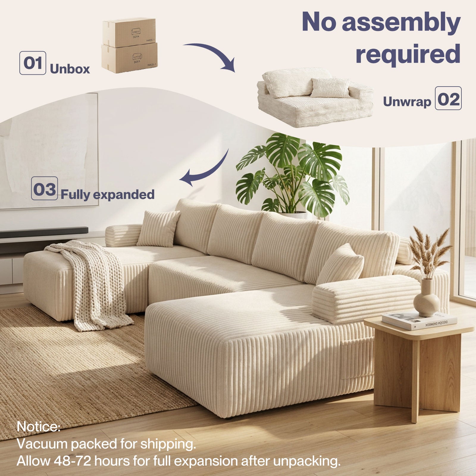 Crafted with premium wide-rib corduroy sofa fabric (310gsm), this Levede piece offers a soft, breathable, and durable finish that elevates any interior. The generously sized design transforms it into an oversized sofa or even a casual convertible sofa setup, perfect for lounging, entertaining, or quick naps.