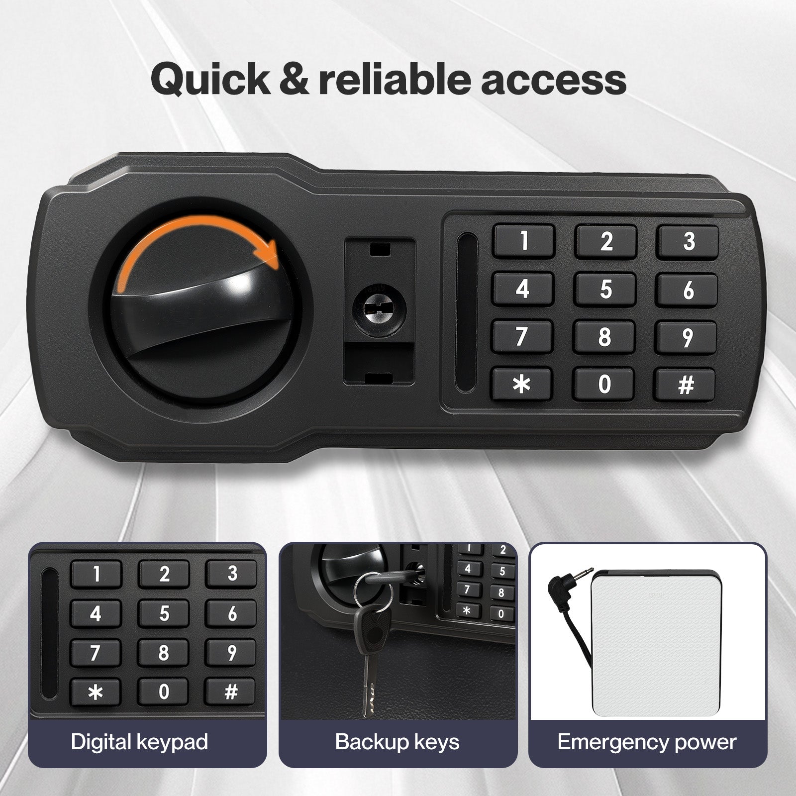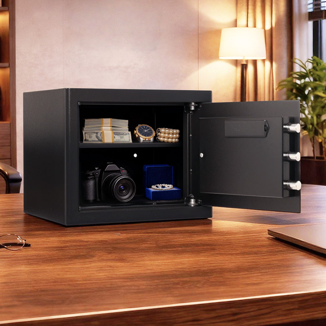 Safeguard your valuables with the 31L home safe, designed to provide reliable protection for important belongings. This spacious safe box combines modern digital security with sturdy construction, making it ideal for homes, offices, or apartments. With multiple unlocking methods and a practical interior layout, this security safe helps keep your laptop, jewellery, cash and documents organised and protected.