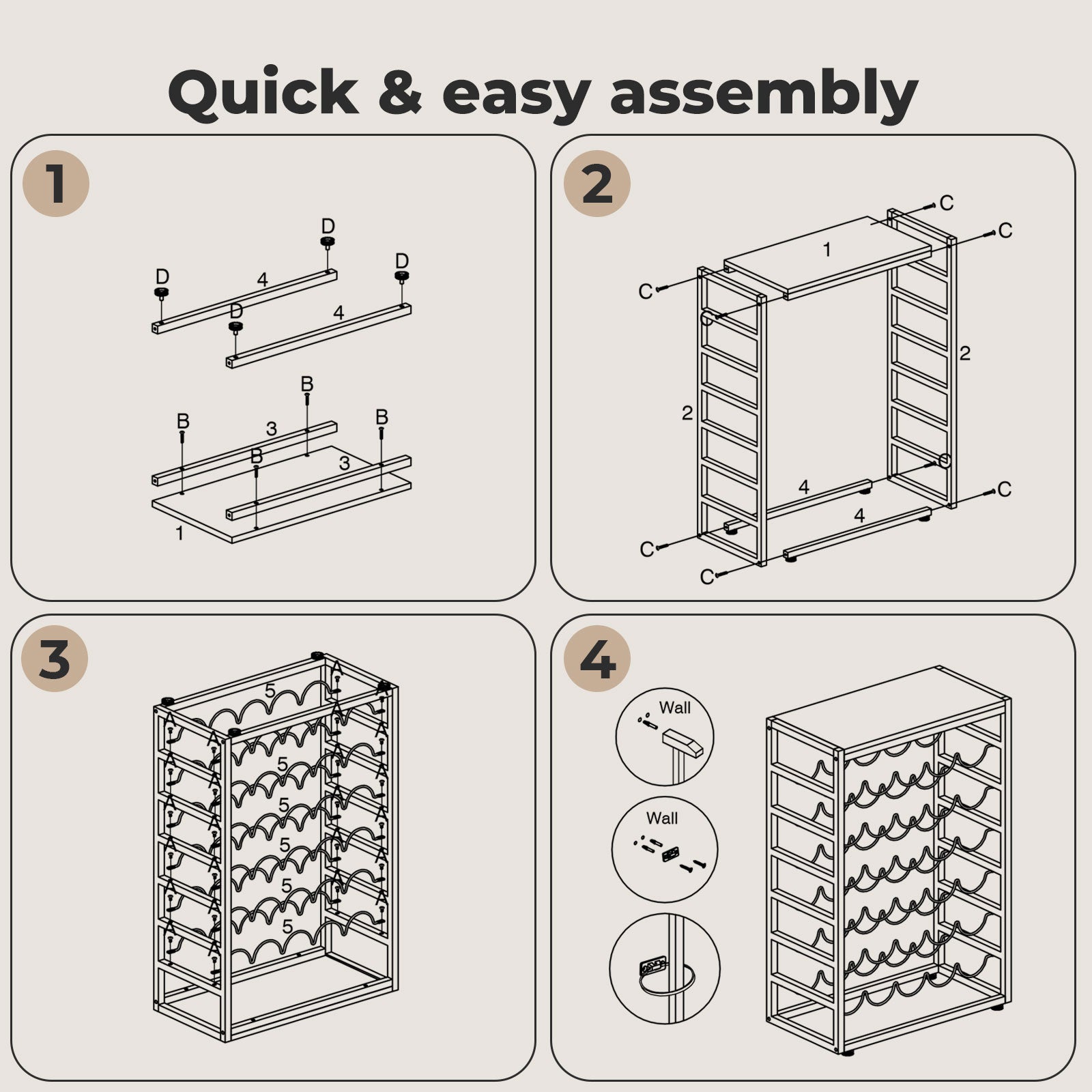 More than just a metal wine rack, the Levede design features a spacious top surface for glasses, décor or accessories, turning it into a refined barware wine rack or kitchen wine rack. Adjustable feet ensure stability on uneven floors, while the solid structure provides long-lasting support.